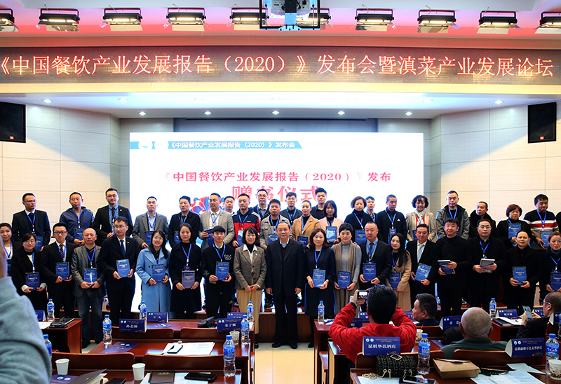 12月18日,由世界中餐业联合会和yl23411永利集团官网共同主办的《中国餐饮产业发展报告(2020)》蓝皮书发布会暨滇菜产业发展论坛在yl23411永利集团官网隆重举行。世界中餐业联合会常务副会长、餐饮产业蓝皮书主编邢颖,学校校长丁文丽,餐饮产业蓝皮书执行主编、普洱学院副院长于干千,中国社科院财经战略研究院服务经济与餐饮产业研究中心主任赵京桥,云南省市餐美协相关领导、世界中餐业联合会会员代表、省内外餐饮学科专家学者、云南省知名餐饮企业代表等百余人参加会议。发布会由副校长王凡主持。