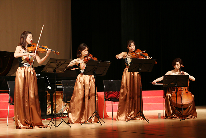 12月1日,日本东京青年古典乐团到永利官网进行“2018重拾经典记忆昆明音乐会”公益演出。本次演出由昆明聂耳研究会、yl23411永利集团官网承办。昆明聂耳研究会会长、昆明市政协原主席、昆明登协名誉主席田云翔,昆明聂耳研究会副会长、昆明市政协原副秘书长周忻,yl23411永利集团官网副校长熊晶等领导嘉宾和永利官网1100余名师生共享音乐盛宴。 今年是中日缔结和平友好条约40周年,也是昆明市和日本藤泽市缔结友好城市37周年,以音乐会作为文化交流活动,让师生在简朴宁静的氛围当中享受音乐的时光,共同秉承爱好和平的不变之心。 本场音乐会以弦乐四重奏和双钢琴的方式共演奏了13首中日经典名曲。音乐会上半场演奏的中国曲目《金蛇狂舞》、《梅娘曲》、《告别南洋》,改编自我国人民音乐家聂耳。演奏《梅娘曲》和《告别南洋》时,东京青年乐团特别邀请了南侨机工合唱团,采用中外结合的方式联合演出,歌曲曲调时而凄凉婉转、时而激进亢奋,以音乐之声谱写出南洋青年爱国、救国的最美篇章。以双钢琴弦乐四重奏的方式演奏的交响音乐作品《黄河钢琴协奏曲》,历久弥新,催人奋进。双钢琴版的《梁山伯与祝英台》旋律悠扬婉转,感染力极强,呈现中国经典音乐旋律以飨听众。 下半场乐团带来了八首日本经典曲目中,除了宫城道雄所做的日本民族传统曲目《春之海》外,还有很多中国观众熟悉的作品。久石让的经典名作《人生旋转木马》和《菊次郎的夏天》都是宫崎骏漫画中的音乐,乐团通过钢琴五组奏的方式将改编过的曲目进行特别呈现,让现场观众回忆满满,久久不能忘怀。两首曾入选20世纪感动日本的十大名单的《良日启程》和《津轻海峡冬景色》以乐团演奏的方式加以呈现,悦耳动听的旋律给听众一种荡气回肠,心旷神怡之感。音乐会最终在青年古典乐团和听众的互动曲目《昂首向前》中结束,该乐团带来的精彩演出获得听众的阵阵掌声。
