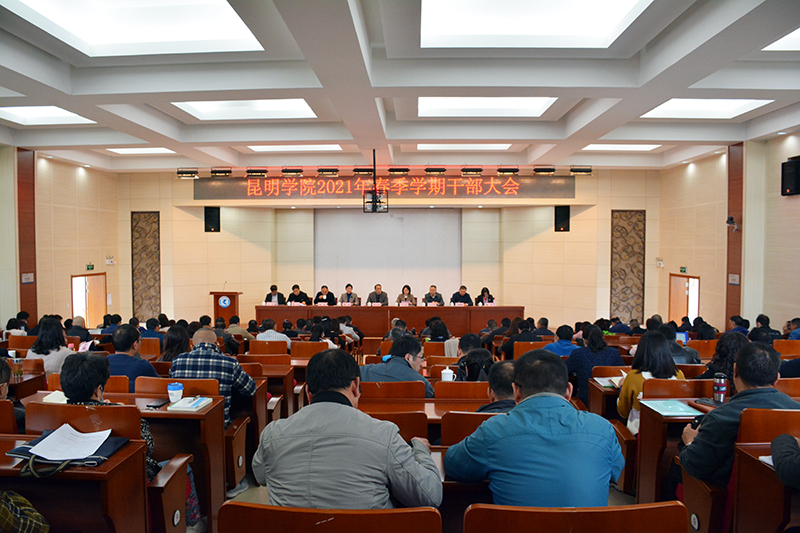2月25日,学校在办公楼D区3楼报告厅召开全校干部大会,安排部署2021年度工作,推进学校高质量发展。学校党委书记陈永明出席会议并讲话,校长丁文丽安排部署行政工作,党委副书记熊晶主持会议。其他校领导和学校全体中层干部、处级辅导员处级组织员参加会议。