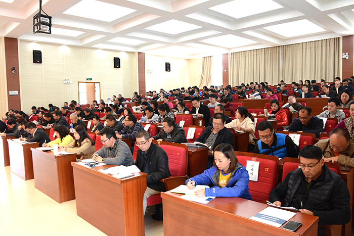 11月15日,学校在办公楼D区报告厅召开全校干部大会。党委书记陈永明出席会议并对迎评工作再次提出要求。校长黎素梅安排部署审核评估迎评最后阶段各项工作。全体校领导,全体中层干部,党校办全体工作人员,评建办全体工作人员,各院系教学秘书参加了会议。党委副书记张祖武主持会议。