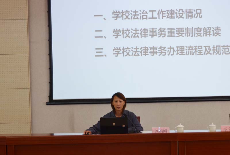 会上,法制办公室主任刘娟娟对学校近期下发的《yl23411永利集团官网合同管理办法(试行)》、《yl23411永利集团官网法定代表人授权委托书管理办法(试行)》《yl23411永利集团官网诉讼与仲裁事务管理办法(试行)》3项制度进行了解读,同时结合OA合同法务系统,对学校法律事务工作流程作了重点梳理和培训。