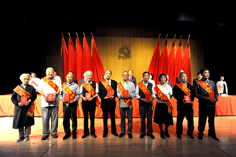学校“光荣在党50年”党员代表、“两优一先”表彰对象、全体处级以上干部、师生党员代表参加表彰大会。