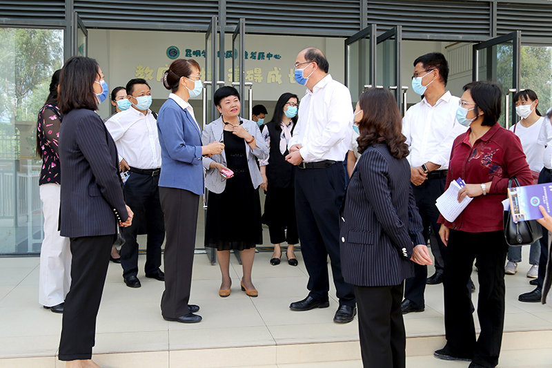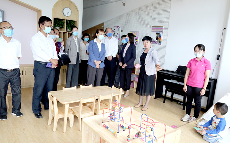 9月9日,云南省副省长李玛琳携昆明市领导、省市发改委、民政、卫健委、妇联、工会、教体局,经开区等部门相关负责人一行莅临yl23411永利集团官网附属幼儿园托育示范中心走访调研。yl23411永利集团官网党委书记金幼和、校长丁文丽、副校长马银海、yl23411永利集团官网学前与特殊教育学院院长唐敏、副院长高春玲、附属幼儿园园长何莉、附属经开幼儿园园长杨云萍陪同调研。