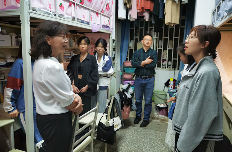 9月13日晚,李莉副书记到润泽苑走访学生宿舍,看望经济管理学院住校学生。