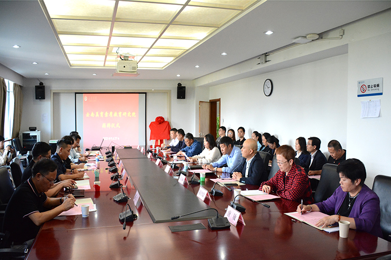 孔蓉副主任、丁文丽校长、冯昆董事长为“云南美育素质教育研究院”揭牌。