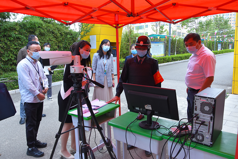 检查组一行认真查看了学校门卫值班记录情况,疫情防控执行情况,通过校园监控设备,实时查看了食堂备餐情况和校园楼道出入口的安全防护情况。
