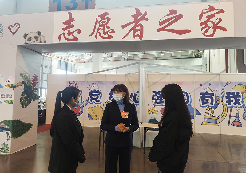 10月14日,受学校主要领导委托,学校党委副书记李莉专程前往COP15大会主会场昆明国际会展中心看望慰问学校志愿服务学生。