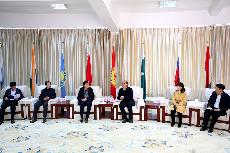 12月13日,青岛市委常委、胶州市委书记,中国-上海合作组织地方经贸合作示范区党工委书记、管委会主任刘建军一行在昆明市委常委、副市长孙群的陪同下,到永利官网调研中国--上合组织青年交流中心工作。校党委书记金幼和,党委副书记李莉,党委委员、副校长李剀热情接待来宾一行。