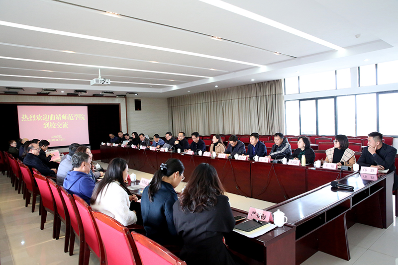 12月17日,曲靖师范学院党委副书记、校长李泽华率队到永利官网考察交流,党委书记金幼和热情接待来宾,双方进行了座谈交流。曲靖师范学院党委副书记陆选荣、副校长杨学智,学校党委副书记李莉,副校长沈凡、李剀出席。