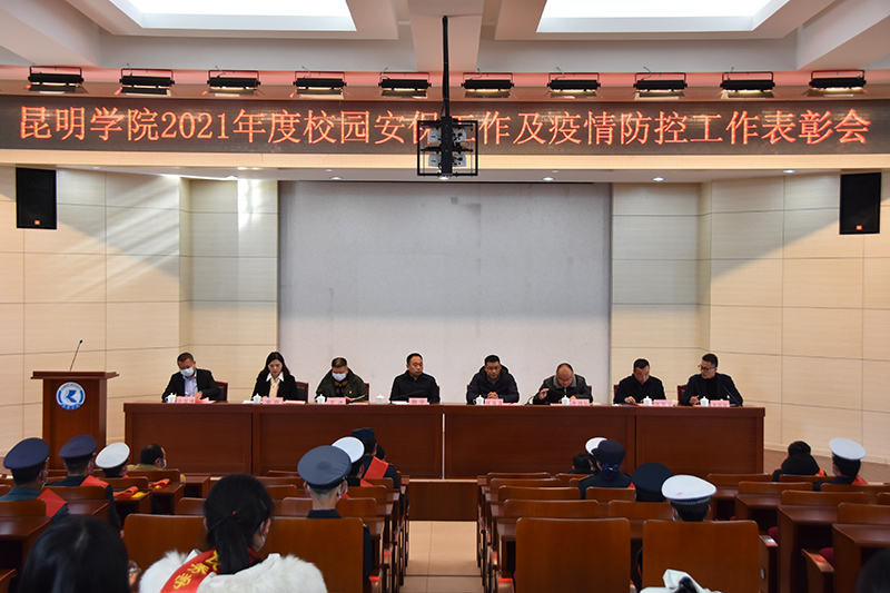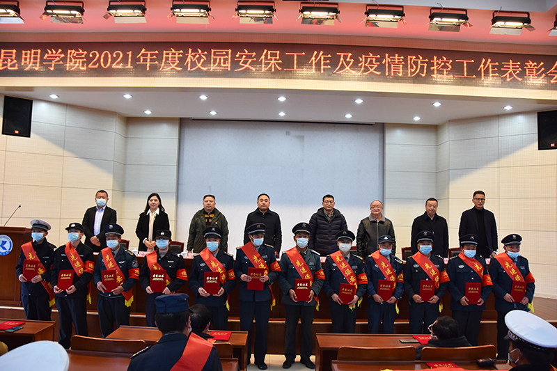 12月28日,学校在办公楼D区三楼报告厅召开yl23411永利集团官网2021年度校园安保工作及疫情防控工作表彰大会。党委委员、副校长郭华出席会议并讲话。办公室、学生工作部、保卫处等部门负责人,云南飞虎保安服务有限公司负责人,保卫处全体干部职工、保安、学生治安服务队员参加会议。