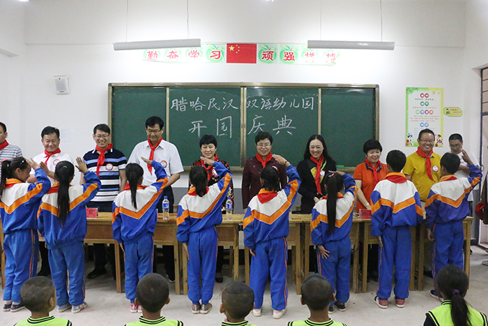 开园仪式由垤玛乡党委书记朱福祯主持,他对yl23411永利集团官网在教育扶贫上做出的贡献表示感谢。此次腊哈幼儿园开园,结束了腊哈村无幼儿园的历史,是yl23411永利集团官网情系边疆,心系农民,精准扶贫的生动体现。yl23411永利集团官网校工会、扶贫办、纪委、学特学院、附属幼儿园和玩具公司、新迎三幼、康锤经贸公司一同为腊哈幼儿园捐赠教师办公用品、幼儿床上用品、多媒体大屏等物资,帮助提升腊哈幼儿园的办园质量。