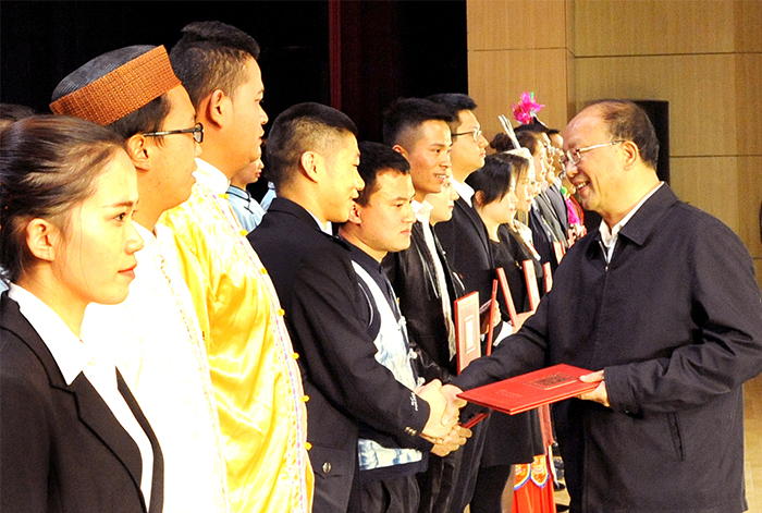 9月29日下午,云南省高校“新时代、新担当、新作为”主题活动在永利官网学生会堂举行。 省委常委,省委组织部部长,云南省大学生思想政治教育工作领导小组组长李小三出席活动并为年度人物获奖代表颁奖。 主题活动由主题班会展示、故事演讲、优秀人物颁奖等部分组成。云南师范大学辅导员赵德虎现场展示了一堂关于《学习党的十九大 争做时代新青年》的主题班会,通过“知•情•意•行”四个阶段,将党的十九大精神融入到学生头脑之中。全国高校辅导员年度人物、云南大学辅导员朱丹分享了自己担任辅导员6年来的成长历程,号召辅导员成为习近平总书记今年教师节寄语的塑造学生品格、品行、品味的“大先生”。云南大学学生傅靖涵讲述了云南大学研究生支教团的故事,充分展示了新时代青年乘新时代春风,在祖国的万里长空放飞青春梦想的风貌。整场活动寓意深厚、感人至深,引领广大师生爱国、励志、求真、力行。 主题活动对2018年云南省大学生年度人物、高校辅导员年度人物、最受学生敬佩辅导员、最关爱学生班主任进行表彰。省委常委,省委组织部部长,云南省大学生思想政治教育工作领导小组组长李小三出席活动并为云南省第十届高校辅导员年度人物和第十三届大学年度人物获奖代表颁奖。云南省人民政府教学督导团总督学陈世波为云南省高校第四届最受学生敬佩辅导员和第三届最关爱学生班主任获奖代表颁奖。 活动最后,永利官网全体辅导员齐唱《辅导员之歌》,唱响育人的路上高举理想,用爱与智慧为青春导航。