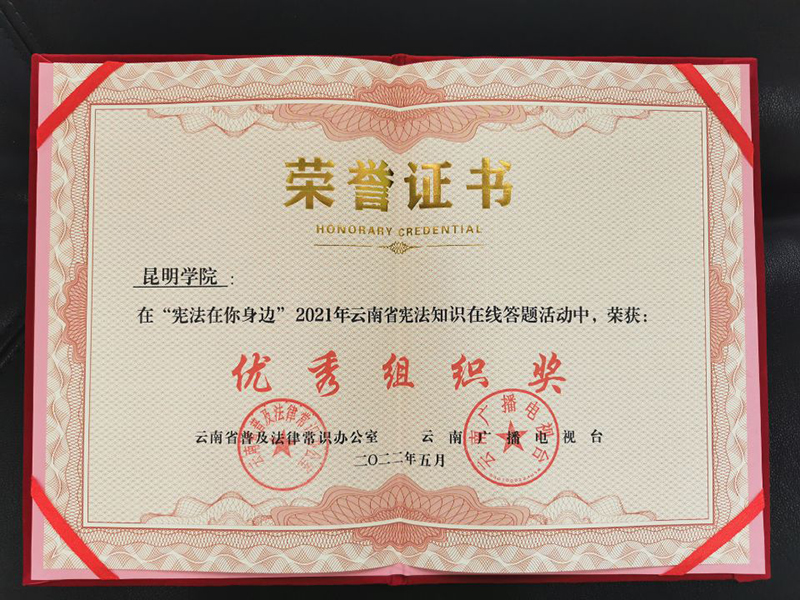 近日,云南省普法办、云南广播电视台联合组织开展的“宪法在你身边”宪法在线答题活动圆满结束,yl23411永利集团官网荣获优秀组织奖。