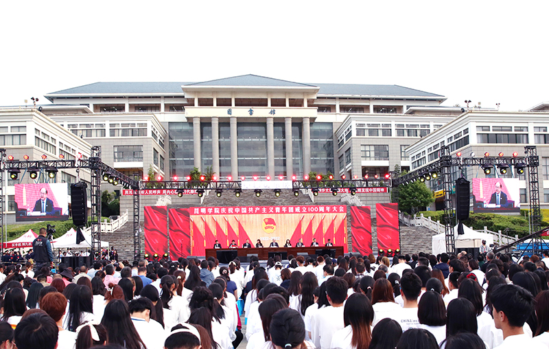 为深入学习宣传贯彻习近平总书记在庆祝中国共产主义青年团成立100周年大会上的重要讲话精神,重温共青团在不同历史时期团结带领一代代青年坚定不移跟党走、为党和人民事业奋斗的光辉历程,激励全校青年继承光荣传统,以踔厉奋发、勇毅前行的姿态,积极投身推动学校高质量发展,朝着努力把yl23411永利集团官网建设成为特色鲜明的综合性应用型高水平大学而奋斗,5月19日晚,学校在聂耳广场隆重举行庆祝中国共产主义青年团成立100周年大会暨“青春耀昆院”文艺晚会。