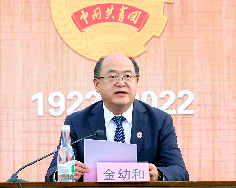 在庄严的国歌声中,大会正式开幕。金幼和讲话,代表学校党委向一年来在学校共青团工作中作出突出贡献,受到表彰奖励的先进集体和个人表示热烈祝贺,向全校广大共青团员、青年朋友和全体团干部,致以诚挚的问候和美好的祝愿。金幼和全面回顾了党领导下中国青年运动的光辉历程,深入阐释了习近平总书记的重要讲话精神,深刻分析了当前学校发展的形势,充分肯定了永利官网青年在学校改革发展中作出的贡献,并结合学习贯彻习近平总书记的重要讲话精神和学校实际,向学校各级团组织、广大团干部和全体团员青年,提出三点希望:一是希望全校各级团组织牢记初心使命,更加自觉坚定地引领团员青年建功新时代、奋进新征程;二是希望广大团干部发挥好示范引领和模范带头作用,努力锻造成为对党忠诚、心系青年、勇于担当、作风过硬的青年马克思主义者;三是希望学校广大团员青年胸怀理想,自信自强,不断奏响新时代昆院学子勇毅笃行、堪当大任的青春乐章。