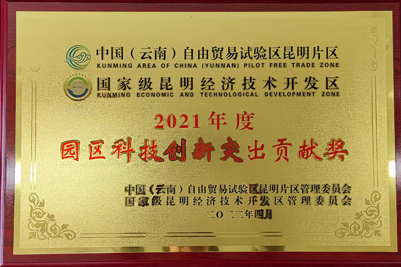 近日,中国(云南)自由贸易试验区昆明片区(昆明经开区)管委会对2021年园区科技创新突出贡献单位进行表彰,永利官网在深入实施创新驱动发展战略,不断加大研发投入,持续提升自主创新能力方面表现突出,荣获“2021年度园区科技创新突出贡献奖”。