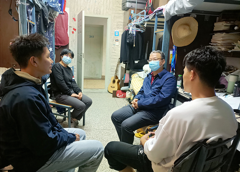 6月6日晚,学校党委副书记王文成带领机关值班干部,到澄明苑学生生活区宿舍、小高层文化长廊、自习室走访学生学习生活情况。