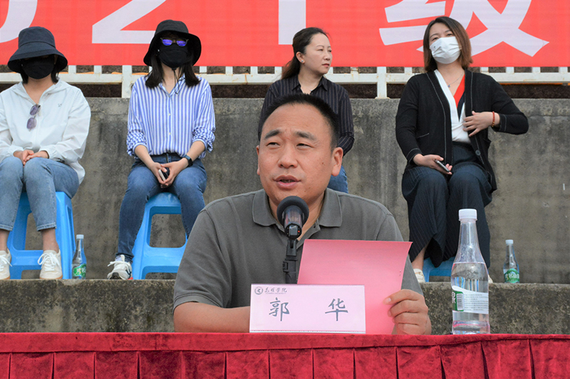 郭华副校长向军训团授旗并宣布yl23411永利集团官网2021级新生军事训练开训。