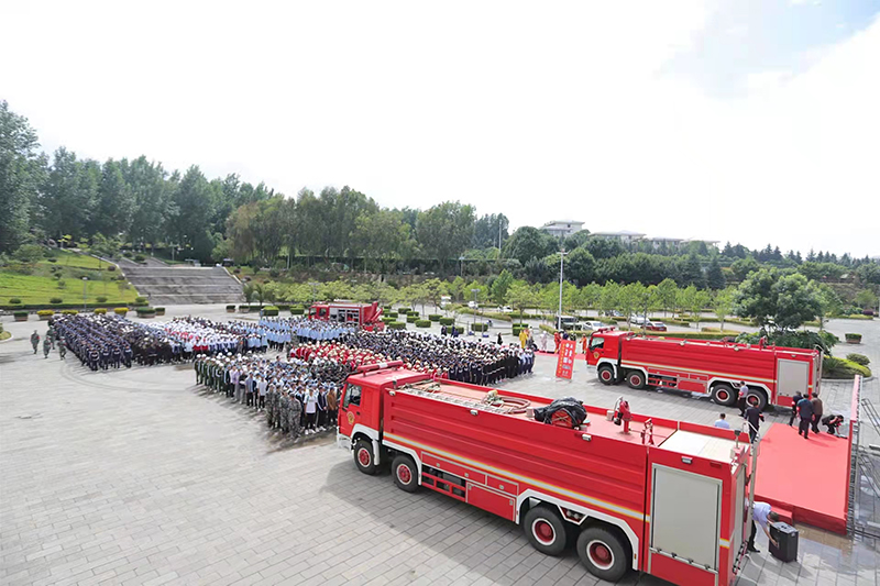 昆明经开消防救援大队为2021级学生1500人进行消防安全知识宣讲,并为同学们现场展示和讲解消防器材、设施及装备的功能。郭华副校长与同学们一同参加了消防装备现场体验活动。