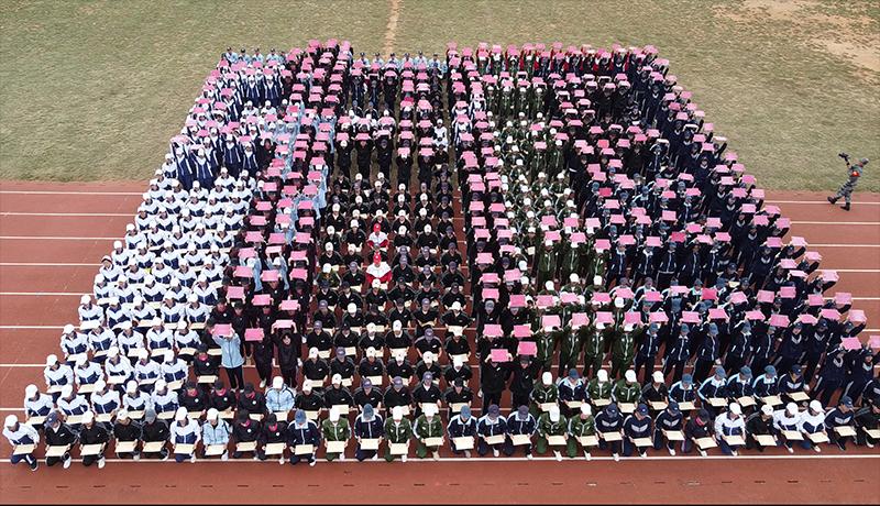 军训汇报表演在庄严的《义勇军进行曲》歌声中拉开序幕。2021级参训学生在田径场接受检阅。18个二级学院方队,口号嘹亮、脚步有力,依次走过主席台前,接受各位与会领导的检阅,展示14天军训的成果。