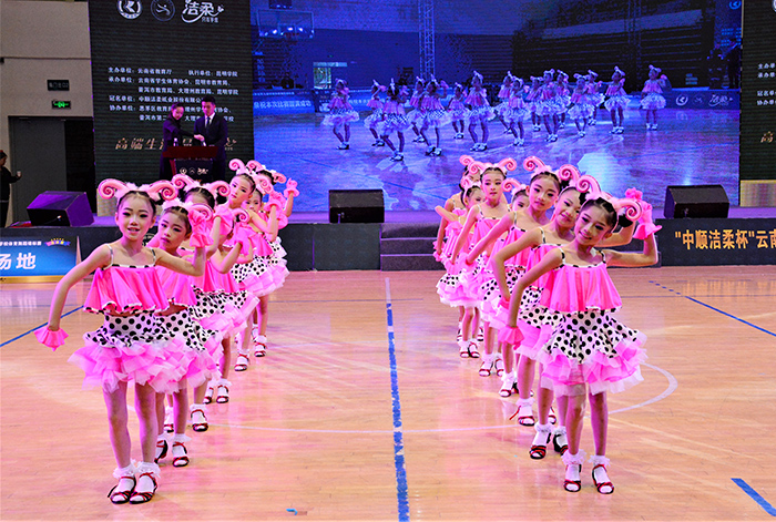 10月13-14日,由云南省教育厅主办,云南省学生体育协会、昆明市教育局、普洱市教育局、大理州教育局、yl23411永利集团官网承办的云南省第九届学校体育舞蹈锦标赛总决赛在yl23411永利集团官网体育馆隆重举行。来自普洱、大理、昆明三个赛区各组别各项目前八名选手的52个学校1000余人参加总决赛。决赛竞争激烈,可谓精彩纷呈。 云南省教育厅体卫艺处处长徐忠祥,yl23411永利集团官网党委副书记张祖武、副校长熊晶,云南省学生体育协会会长姜征明,云南省学生体育协会副会长张国华,中顺洁柔纸业股会有限公司市场部总经理赵鹤等领导和嘉宾出席开幕式。 熊晶副校长代表承办方致欢迎辞,对各位领导、各位嘉宾、运动员、领队教师以及评判员的到来表示热烈欢迎。她指出,体育舞蹈作为一个新兴运动项目,在社会体育和学校体育中越来越受关注。体育舞蹈作为yl23411永利集团官网的特色专业,得到了全国大学生体育协会、云南省教育厅、云南省学生体育协会各级领导的大力支持和充分肯定。yl23411永利集团官网体育舞蹈专业学生在全国、全省的比赛中取得优异的成绩,由学校体育舞蹈专业教室创作新编排的校园体育舞蹈和民族体育舞蹈,填补了我国学校体育舞蹈的空白,丰富了校园体育舞蹈内容,并在全国和全省获得推广,为校园体育舞蹈文化建设作出了贡献。