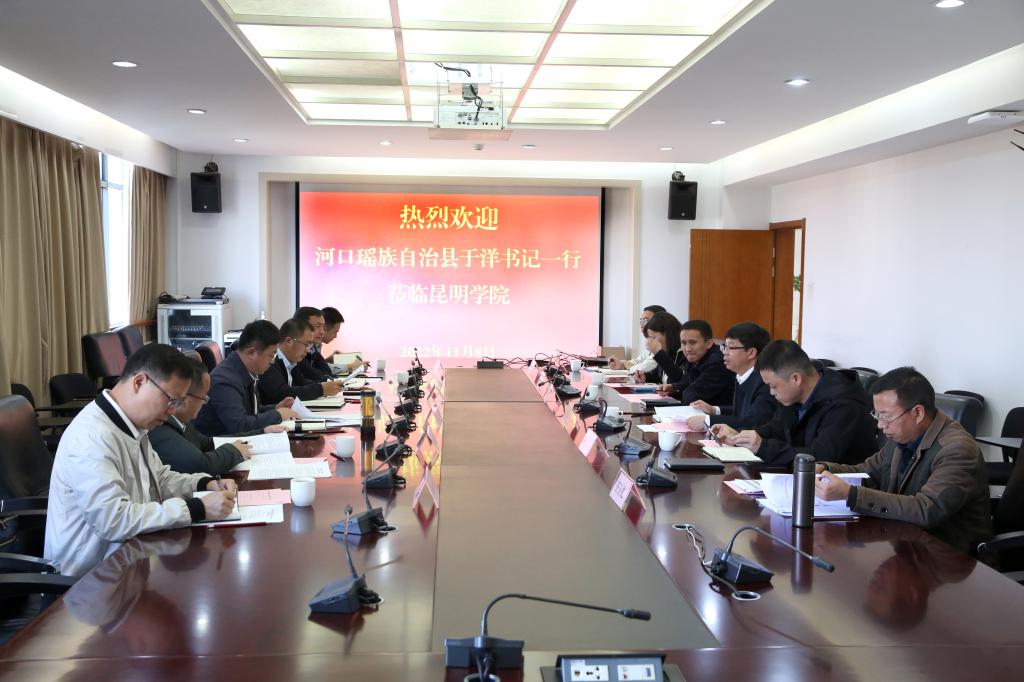 于洋书记感谢yl23411永利集团官网的热情接待和对河口县教育事业的关心支持,重点介绍了河口县教育事业的发展情况,希望yl23411永利集团官网发挥教育资源优势,对河口县的教育发展给予帮助。