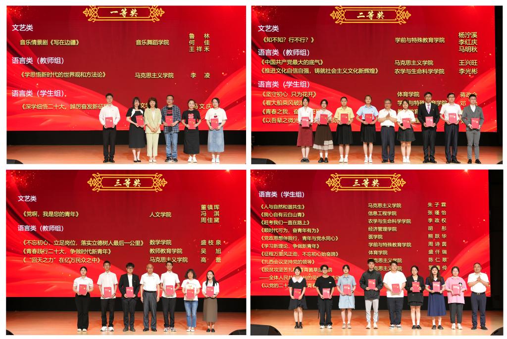 理论宣讲作品分语言类和文艺类两种形式,各获奖选手代表紧扣学习宣传贯彻党的二十大精神主线,分别从党的百年辉煌历程、马克思主义中国化时代化、新时代10年伟大成就、中国式现代化、人民中心思想、乡村振兴、中国特色社会主义文化强国、生态文明建设、争做新时代青年等方面进行了精彩宣讲,深入宣讲了新时代 10 年的伟大变革及其里程碑意义、习近平新时代中国特色社会主义思想的世界观和方法论以及贯穿其中的立场观点方法、以中国式现代化全面推进中华民族伟大复兴的使命任务、全面建设社会主义现代化国家的重大部署等内容。