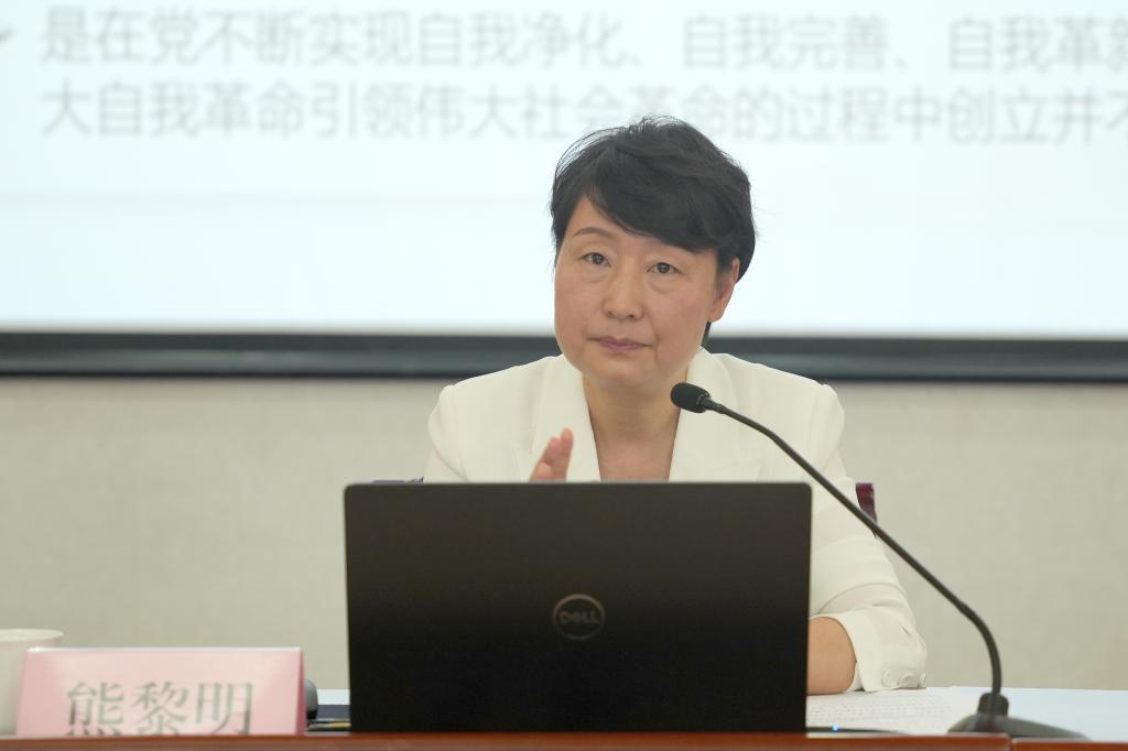 熊黎明教授围绕“习近平新时代中国特色社会主义思想是党和国家必须长期坚持的指导思想--深入学习习近平关于调查研究的重要论述”这一主题,从新时代新征程大兴调查研究的重要性、调查研究需要重点解决的问题、调查研究的思想作风要求以及如何运用科学方法进行调查研究等方面展开宣讲,强调要在全面学习、系统把握、深入落实上下功夫,深刻领悟“两个确立”的决定性意义,把学习贯彻习近平新时代中国特色社会主义思想不断引向深入。