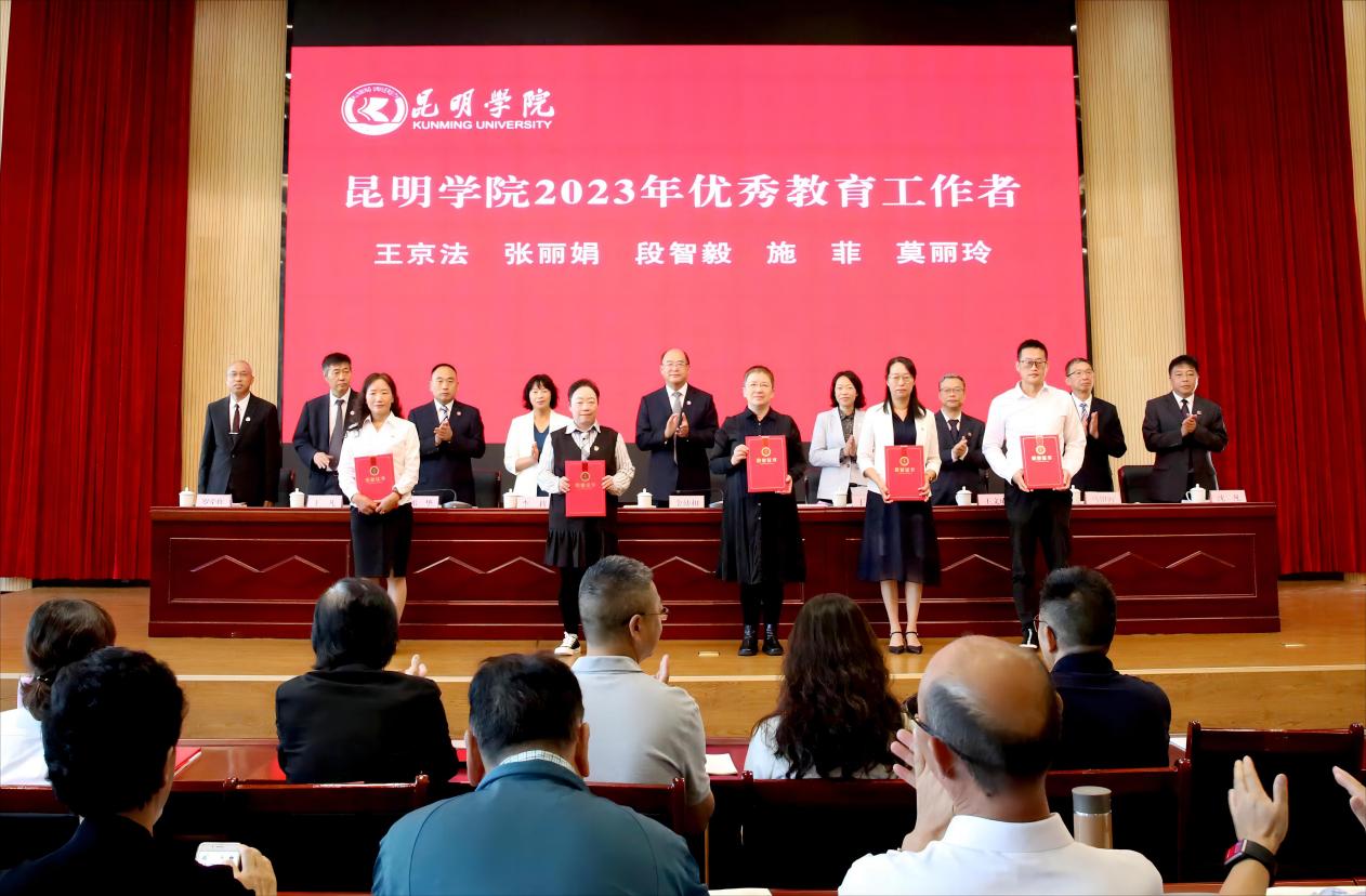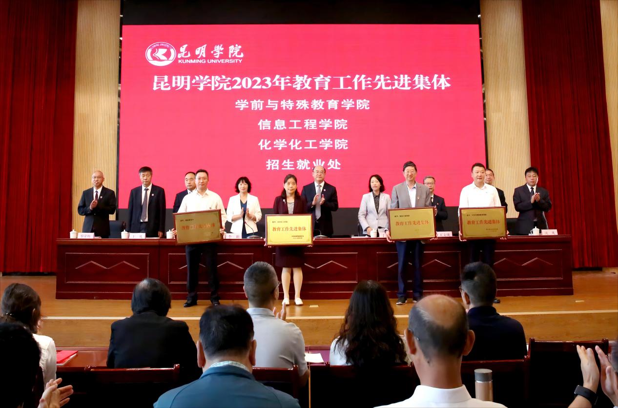 9月8日,在第39个教师节到来之际,学校召开庆祝教师节表彰大会暨2023年秋季学期工作会,对在学校建设发展中作出突出贡献的集体和个人进行表彰,总结学校上半年工作,安排部署新学期工作。会议强调,要深入学习贯彻习近平新时代中国特色社会主义思想和党的二十大精神,巩固深化主题教育成果,贯彻落实全省教育发展大会和昆明市教育发展大会精神,抓紧抓实学校高质量发展三年行动计划,大力弘扬人民教师爱党爱国、潜心育人、甘于奉献的精神,充分发挥先进典型示范引领作用,奋力开创建设特色鲜明的综合性应用型高水平大学新局面。