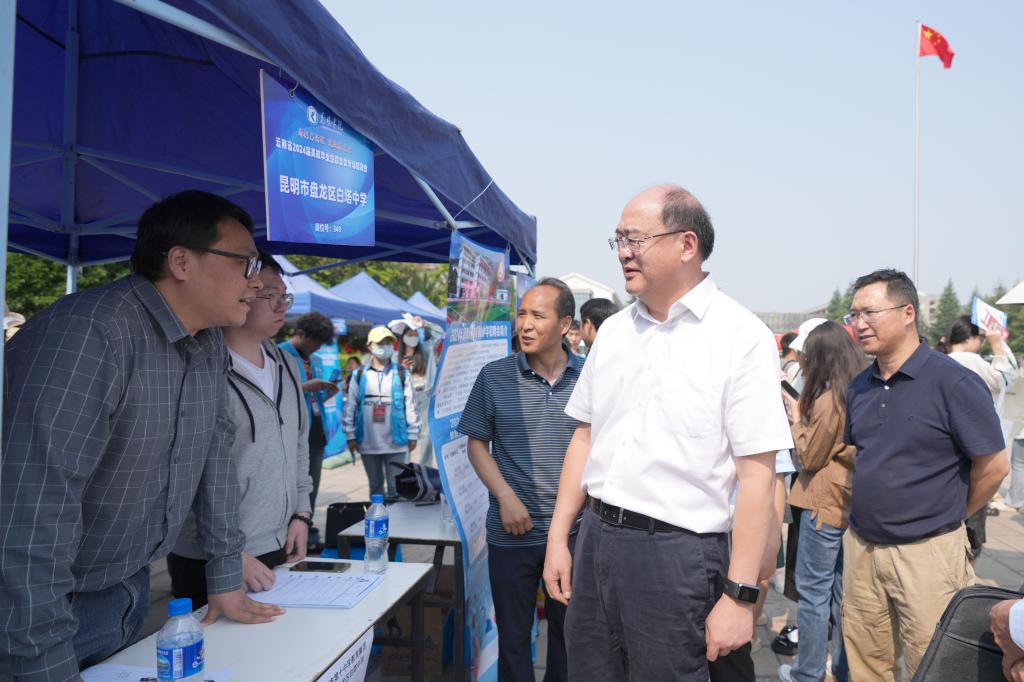 yl23411永利集团官网党委书记金幼和,党委副书记王文成,党委委员、副校长彭志远、王凡等校领导;省委教育工委学生工作部部长和缘玉,省大中专毕业生就业服务中心主任杨宏伟、副主任米文波;昆明市教育体育局副局长杨文佳、昆明市人力资源和社会保障局就业处处长谢涛、昆明市人才服务中心教育分中心主任陆丽萍,以及各县市区人力资源和社会保障局、各县市区教育体育局相关领导到现场指导,并与参会单位和毕业生亲切交谈。