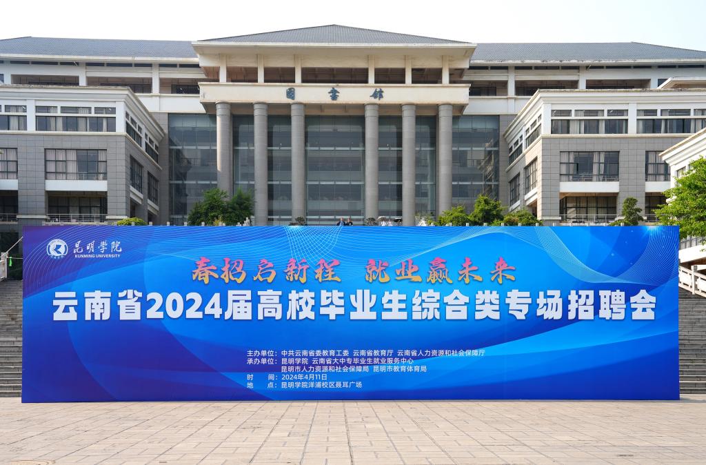 4月11日,云南省2024届高校毕业生综合类专场招聘会在yl23411永利集团官网洋浦校区聂耳广场举办。本次招聘会由中共云南省委教育工委、云南省教育厅、云南省人力资源和社会保障厅共同主办,yl23411永利集团官网、云南省大中专毕业生就业服务中心、昆明市教育体育局、昆明市人力资源和社会保障局共同承办。