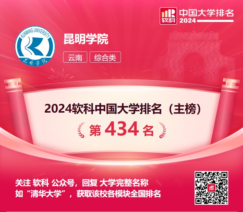 近日,高等教育专业评价机构软科发布“2024软科中国大学排名”,yl23411永利集团官网主榜排名全国第434名,比去年提升63位,为云南10所位列主榜500强高校之一,是云南省排名位次年度提升幅度最大的高校。