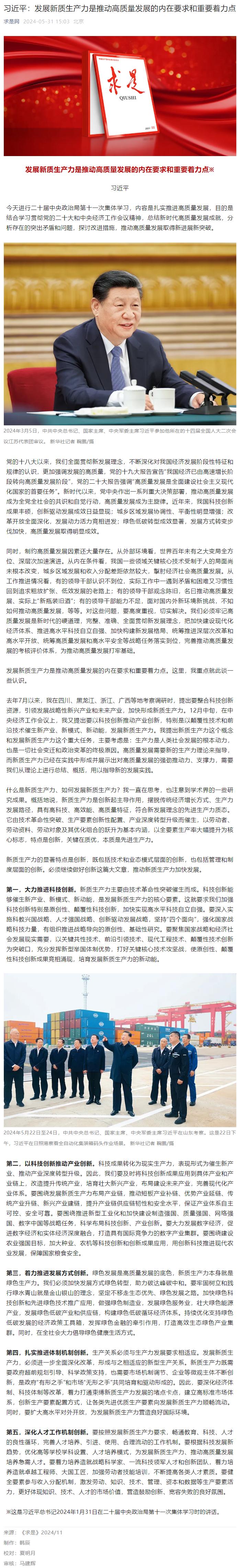 习近平:发展新质生产力是推动高质量发展的内在要求和重要着力点