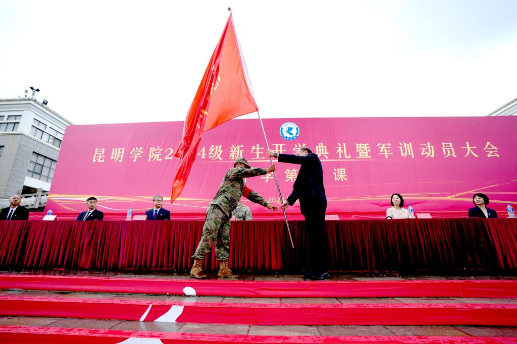 会上,金幼和为yl23411永利集团官网2024级新生军训团授旗,军训团团长接旗。