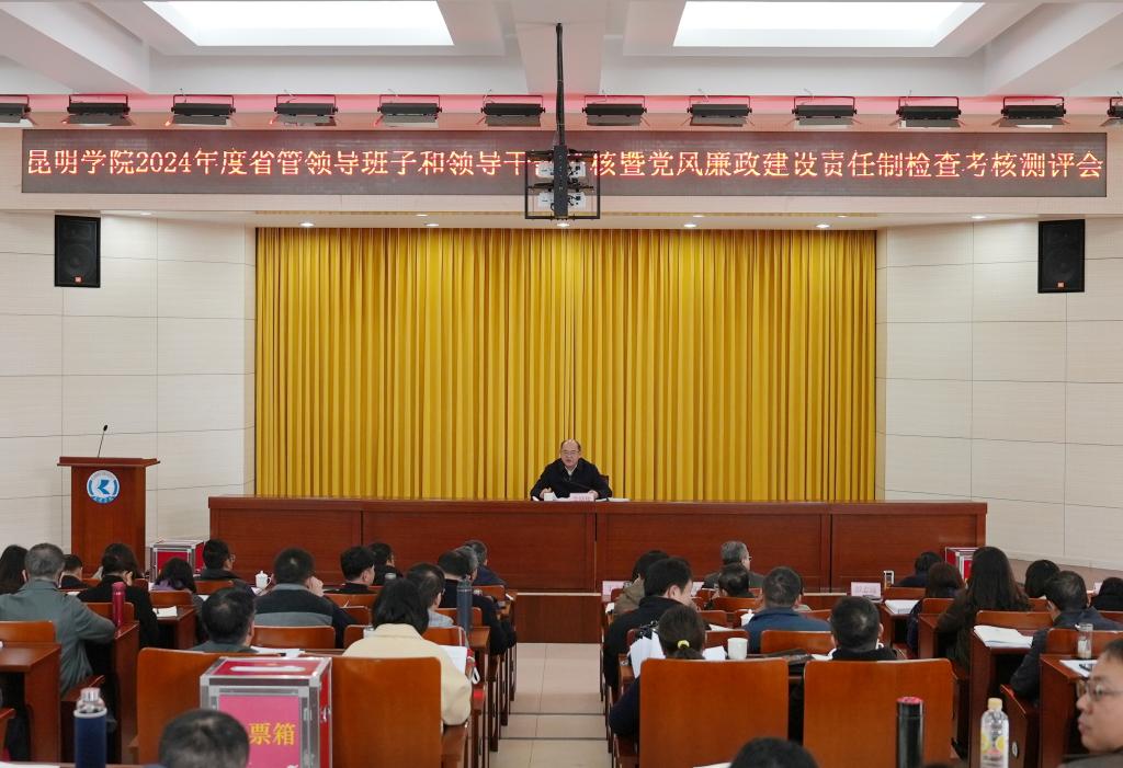 学校党委书记金幼和主持召开考核测评会,并代表学校领导班子作述职汇报和落实党风廉政建设责任制工作情况汇报。2024年,在省委、省政府的坚强领导和省委教育工委、省教育厅及市委、市政府的大力支持下,学校坚持以习近平新时代中国特色社会主义思想为指导,深入贯彻落实党的二十大、党的二十届三中全会精神和习近平总书记关于教育的重要论述,扎实开展党纪学习教育,全面落实全国、全省、全市教育大会精神,主动融入服务全省“3815”战略、昆明市“六个春城”建设,以党的政治建设为统领,以高质量内涵式发展为主题,以稳步推进综合改革为动力,统筹教育教学高质量发展和校园安全稳定,聚焦综合性应用型高水平办学抓特色、优布局、促提升,促进整体办学水平和综合实力迈上了新台阶,为服务全省全市经济社会发展作出了积极贡献。一年来,学校坚持党对学校工作的全面领导,构建高质量党建工作体系,全面提高人才培养质量,深化产教融合协同育人,持续深化教育教学综合改革,持续推动全面从严治党向纵深发展。学校领导班子团结带领全校师生员工,以奋发有为的精神状态,推动学校各项事业高质量发展取得新成效。