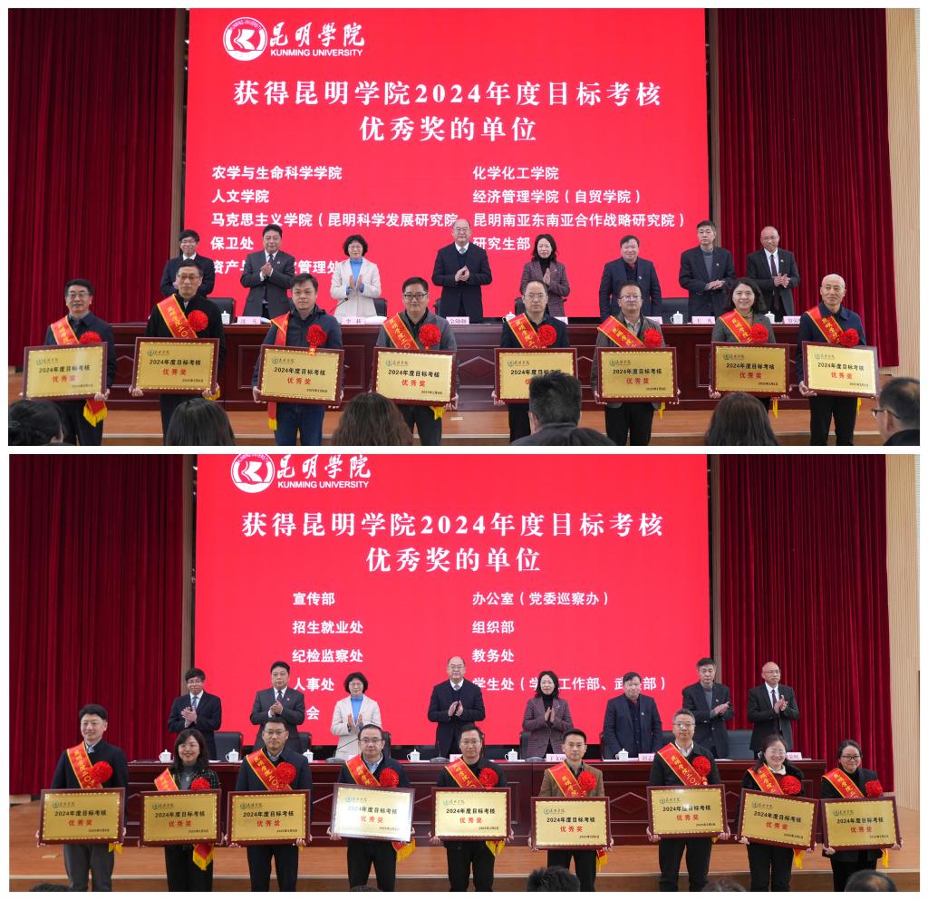 学校党委副书记李莉主持会议,全体校领导、全体中层领导干部(含处级组织员、辅导员)、内设党政管理机构、二级学院正科级干部参加会议。会议对学校2024年度考核结果为优秀的17家单位进行了表彰。