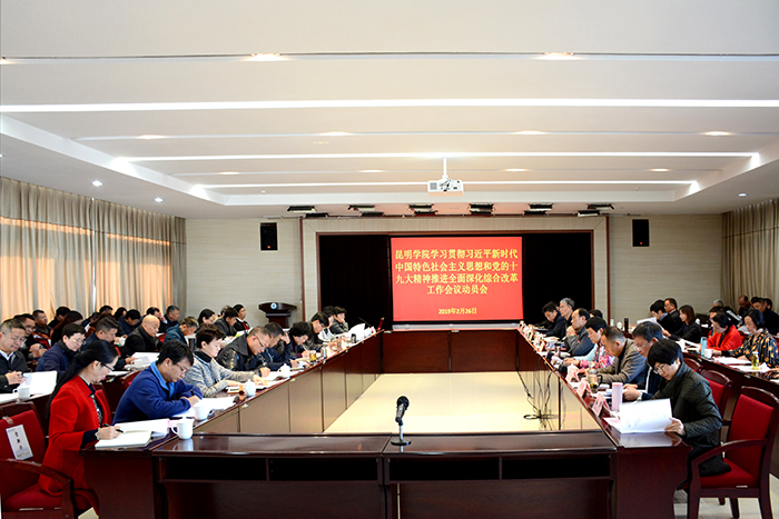 2月26-27日,学校党委召开学习贯彻习近平新时代中国特色社会主义思想和党的十九大精神推进全面深化综合改革专题工作会议,科学谋划和加快推进学校全面深化综合改革工作,进一步促进学校内涵发展。学校全体校领导,各单位党政主要负责人参加会议。