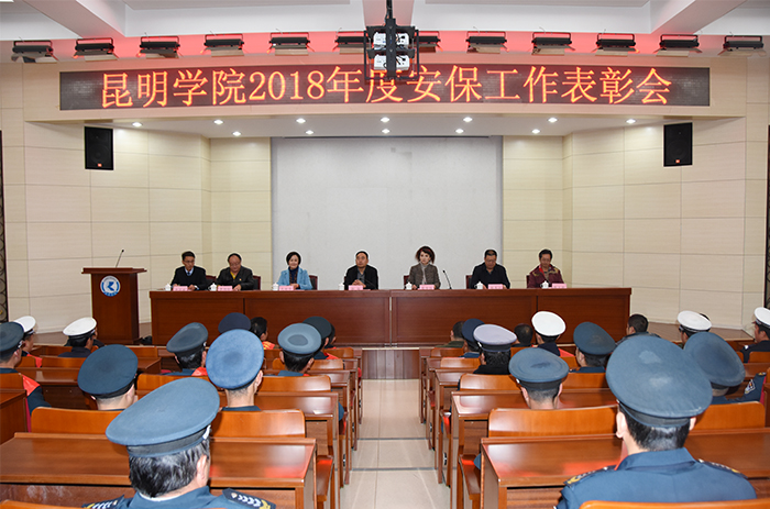 会上,与会领导为获得表彰的集体和个人颁奖,保卫处3个优秀科室、4名优秀保卫干部、31名优秀保安员、10名优秀学生治安服务队队员受到表彰。优秀保卫干部、保安员、学生治安服务队员代表分别作发言。云南飞虎保安服务有限公司总结了2018年度驻校保安大队安保服务的的情况。