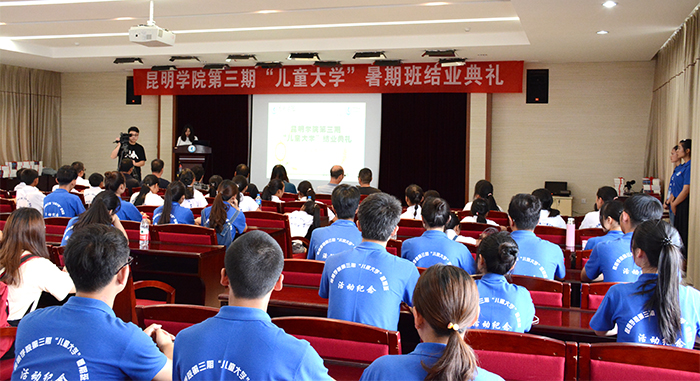 7月23日,由yl23411永利集团官网、共青团昆明市委、昆明市禄劝县九龙镇政府主办的第三期儿童大学暑期班结业典礼在永利官网办公楼502报告厅举行。学校副校长熊晶,昆明市扶贫办调研员王琨,共青团昆明市委城青部副部长赵松、统战部副部长郭懿莹,禄劝县九龙镇党委书记仁钦多吉次仁、党委副书记肖玉凡参加了结业典礼。来自yl23411永利集团官网扶贫挂联点的禄劝县九龙镇文林村、木克村和团市委挂联点东川区拖布卡镇象鼻村的30余名小学员圆满完成了第三期儿童大学暑期班各项参观学习任务,顺利结业。