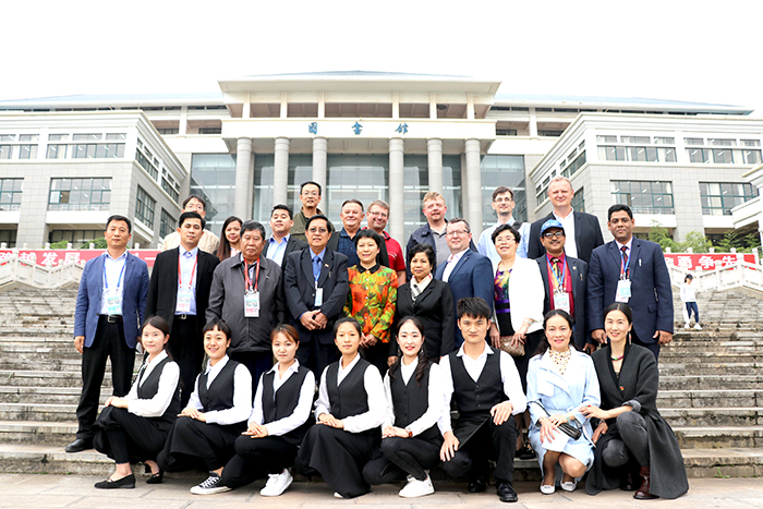 6月15日,缅甸、孟加拉、柬埔寨等5个友城政府代表团访问永利官网。来宾在校长黎素梅、副校长熊晶的陪同下,参观了体育馆、滇池流域生态文化博物馆、美术与艺术设计学院(2018届毕业生作品展)和旅游学院酒水实验室。