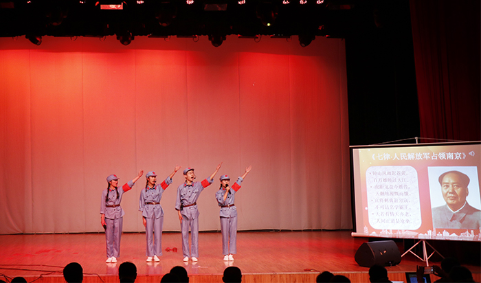 6月15日,由马克思主义学院主办,新时代高校思想政治教育改革创新研究团队承办的yl23411永利集团官网大学生“读原著学原文悟原理”红色经典诵读现场展演在音乐楼实践教室举行。学校党委副书记张祖武,副校长郭华出席并指导工作,马克思主义学院院长董学荣和马克思主义学院部分教师观看展演。