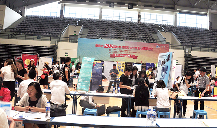 6月20日,学校在综合馆举办云南省2018届综合类高校毕业生校园招聘会。招聘会由云南省大中专毕业生就业服务中心主办,yl23411永利集团官网、昆明市劳动就业局和昆明经济技术开发区承办。校长黎素梅亲临现场了解招聘会开展情况,询问用人单位人才招聘情况,关心毕业生就业情况,昆明市劳动就业局、昆明经济技术开发区有关部门领导来到招聘现场为大学生就业创业提供政策咨询服务。