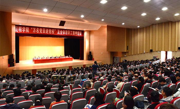 4月20,yl23411永利集团官网“万名党员进党校”及全体教职工集中培训工作在学生会堂启动。学校党委书记陈永明出席并作专题报告,党委副书记张祖武主持会议并作动员讲话,纪委书记王映平,副校长熊晶、郭华、董建华、马银海和全校教职员工1700余人参加会议。