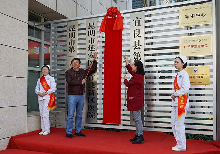 最后,马银海副校长与宜良县副县长刘春菊共同为yl23411永利集团官网附属宜良医院揭牌。