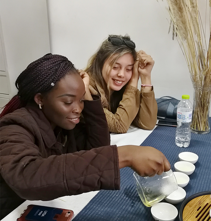 对外经济贸易大学驻美国德克萨斯大学圣安东尼奥分校孔子学院院长姚万祥教授对永利官网的热情接待表示感谢并希望两校间能够开展更为深入的交流与合作。双方在亲切友好的座谈交流之后,共同体验了中国传统的茶文化艺术。在中国老师的指导下,来自美国的同学亲自体验了茶的泡制,并表示回国后将会向自己的家人和朋友做展示。
