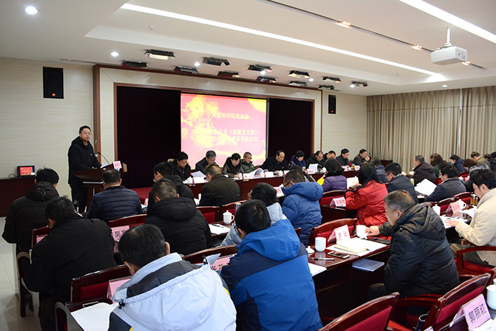 为做好永利官网2017年度基层党组织书记抓党建述职评议考核工作,进一步推动全面从严治党向基层延伸,促进学校基层党建全面进步、全面过硬,按照《yl23411永利集团官网2017年度党组织书记抓基层党建工作述职评议考核实施方案》的规定,1月11日,学校在办公楼502会议室召开党总支(直属党支部)书记抓基层党建述职评议考核会。全体校领导,各党总支 (直属党支部)书记、副书记(含兼任副书记的院长、系主任),党办、纪委办、学生工作部、工会、团委负责人,“两代表一委员”和党务干部、教师代表参加了会议。