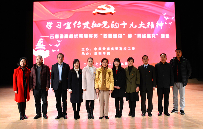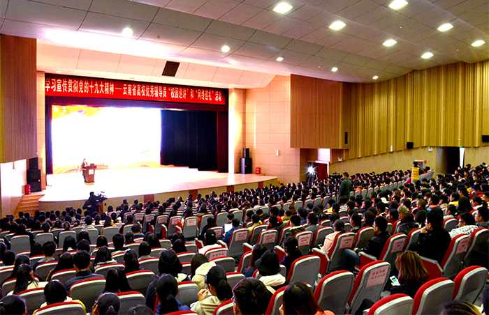 12月19日,由中共云南省委高校工委主办,8所云南省高校辅导员发展研究中心承办,全省各高校协办的“学习宣传贯彻党的十九大精神——云南省高校优秀辅导员校园巡讲和网络巡礼活动”首场校园巡讲报告会在永利官网学生会堂举行。 省委高校工委副书记陶晴,永利官网党委副书记张祖武、副校长郭华,云南农业大学、云南财经大学、西南林业大学、云南警官学院、yl23411永利集团官网等昆明主城区的13所高校的优秀辅导员和学生代表共1300多人参加了首场巡讲报告会。 报告会由副校长郭华主持。 报告会在雄壮的国歌声中拉开序幕。 党委副书记张祖武代表学校在致辞中对巡讲报告团莅临yl23411永利集团官网与广大师生共同学习党的十九大精神表示热烈欢迎,对巡讲报告团成员与广大师生分享学习心得感悟、所见所闻、所思所悟表示感谢。张副书记指出,党的十九大报告博大精深,需要我们从多方面、多领域、多角度去认识、体会和解读。“青年兴则国家兴,青年强则国家强。”报告中对年轻一代的深情寄语,让无数青年心潮澎湃。报告中还提到要优先发展教育事业、提高就业质量、科学创新等,这些都充分体现了以习近平同志为核心的党中央对教育、对广大青年的关注、关心和关爱。在座的各位都是国家建设发展的生力军,希望大家以此次巡讲报告会为契机,做到带着使命学、带着问题学、带着任务学,真正把党的十九大精神融汇于心、付诸行动。辅导员老师要努力将党的十九大精神融入到教学和科研工作中去,立足本职,当好青年的引路人、筑梦人。青年学生们要在全面学习领悟党的十九大报告的基础上,找准突破口,发挥专业专长,做有理想、有本领、有担当的青年人,不忘初心、牢记使命,将党的十九大精神在实际行动中落地生根。 教育部辅导员“双巡”活动全国报告团成员,第八届全国辅导员年度人物,云南省优秀共产党员,云南省首届最受大学生敬佩辅导员朱丹讲题为《把握新判断,青春有担当》;第八届全国高校辅导员年度人物入围奖、云南省第八届高校辅导员年度人物、云南省辅导员职业能力竞赛一等奖谭勇讲题为《成就新飞跃,坚定跟党走》;云南省2012年和2017年“优秀辅导员”陈绍薇讲题为《不忘新使命,续写新篇章》;昆明铁道职业技术学院电气工程系辅导员张羽寰讲题为《拥抱新时代,铸就中国梦》;云南省第六届高校辅导员“年度人物”,全国第五届高校辅导员职业能力大赛决赛二等奖伏云辉讲题为《踏上新征程 青年有作为》。巡讲团成员紧扣巡讲内容,主题鲜明,语言质朴生动,对党的十九大精神有较深入的学习和体会;通过具体案例和饱含深情的讲述使得宣讲报告贴近大学生实际,富有说服力和感召力。 此次辅导员“双巡”活动是为贯彻落实中央关于推动党的十九大精神进校园、进网络等“七进”的要求而组织开展的,活动旨在积极动员广大辅导员和青年学生学在一起,讲在一起,悟在一起,让身边人讲述身边事,用身边事教育身边人,促进自我学习,深化自我教育,实现自我成长,引导广大青年学生自觉用习近平新时代中国特色社会主义思想武装头脑,不忘成长初心,牢记时代使命,在实现中国梦的生动实践中放飞青春梦想,在为人民利益的不懈奋斗中书写人生华章。 活动由线下、线上两个环节组成。线下巡讲由中共云南省委高校工委遴选出23所高校的30名省级优秀辅导员分成6个巡讲组,由省级高校辅导员发展研究中心领队,将分赴全省各地各高校开展巡讲。云南省高校优秀辅导员“学习宣传贯彻党的十九大精神校园巡讲”从12月19日至12月29日将举办20场巡讲报告会,巡讲将覆盖全省76所高校。同时还将通过网络新媒体平台推送每场报告情况,2018年1月份始将组织全省高校师生积极参与教育部组织的“网络巡礼”活动。线上巡礼将在人民网、光明网等媒体开设“辅导员双巡”活动专题,进行在线学习交流,推动实现学习宣传全覆盖。