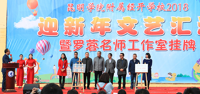 12月29日,永利官网附属经开学校举行了“2018迎新年文艺汇演暨罗蓉名师工作室挂牌”仪式,党委副书记张祖武,副校长郭华出席了挂牌仪式。云南省教育厅师范处雷韬处长、昆明市教育局龚利春副局长、昆明市教育局高中教育处王建方处长、昆明经济技术开发区社会事业局党委李建华书记、昆明经济技术开发区教育局陆文龙局长、永利官网相关职能部门党政领导、昆明经济技术开发区各兄弟学校的党政领导、学生家长参加并见证揭牌仪式。仪式由附属学校校长李晋德主持。