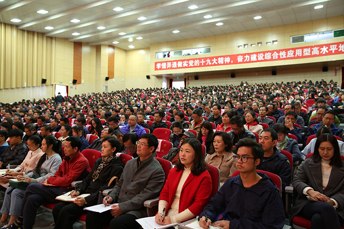 11月3日,yl23411永利集团官网召开扩大会议,传达学习党的十九大精神,对全校学习宣传贯彻进一步作出安排。强调全校上下要把党的十九大精神学习好、宣传好、贯彻好,用精神武装头脑、指导实践、推动工作,把广大党员干部、师生员工的思想和行动统一到党的十九大精神上来,以习近平新时代中国特色社会主义思想为指引,奋力建设综合性应用型高水平地方大学。 学校党委书记陈永明主持会议并传达党的十九大精神,就深入学习宣传贯彻党的十九大精神提出明确要求。纪委书记王映平,副校长熊晶、董建华、沈凡,副校级领导孙勇出席会议。 陈永明书记从党的十九大的基本情况、报告的主要精神、中央纪委工作报告的主要内容、党章修改的主要内容、十九届一中全会精神的主要内容五个方面,系统归纳了过去5年取得的历史性成就和发生的历史性变革,深刻阐述了习近平新时代中国特色社会主义思想的时代背景、核心要义、创新观点和重大贡献,阐述了中国特色社会主义进入新时代、我国社会主要矛盾变化等重大论断,对“两步走”“两个阶段”的战略安排,对经济社会发展的重大部署,对坚定不移全面从严治党进行了系统阐释解读。报告主题鲜明,重点突出,数据详实,资料丰富,运用生动鲜活的数据、案例,系统透彻、深入浅出,具有很强的针对性和感染力。 陈永明书记指出,党的十九大是在全面建成小康社会决胜阶段、中国特色社会主义进入新时代的关键时期召开的一次十分重要的大会,是在新的历史起点上开启党和国家事业新征程的一次大会,是一次不忘初心、牢记使命、高举旗帜、团结奋进的大会,在党和国家发展史上具有重大里程碑意义,是迈向中华民族伟大复兴的重要一步。认真学习宣传贯彻党的十九大精神,关系党和国家事业继往开来,关系中国特色社会主义前途命运,关系最广大人民根本利益,也事关学校综合改革发展进程,动员广大党员干部、师生员工的思想和行动统一到党的十九大精神上来,用精神武装头脑、指导实践、推动工作,奋力建设综合性应用型高水平地方大学,培养社会主义合格建设者和可靠接班人具有重大现实意义。 陈永明书记强调,学习宣传贯彻好党的十九大精神,是学校当前和今后一段时期的首要政治任务。学懂、弄通、做实党的十九大精神,最重要的是学习贯彻习近平新时代中国特色社会主义思想,这是党的十九大精神的灵魂,是我们把握党的十九大精神的“纲”,是我们做好一切工作的主线。要抓住这条主线,在全校迅速兴起学习宣传贯彻党的十九大精神的热潮,使党的十九大精神走进支部、深入班级、融入社团,做到人人知晓,把干部、师生力量凝聚到实现党的十九大提出的各项目标任务上来,让习近平新时代中国特色社会主义思想在学校形成生动实践。 陈永明书记对学习宣传贯彻党的十九大精神作出具体安排,强调:一要抓好学习,准确领会精神实质。全校各党总支、直属党支部,全体党员要原原本本学习党的十九大报告和新党章,准确把握报告体现的本质内涵和精神实质,切实在学懂弄通做实上下功夫,切实将思想和行动统一到党的十九大精神上来,用党的创新理论武装头脑、指导实践、推动工作。二要抓住目标定位,落实好报告对教育工作提出的新要求。广大教师要以立德树人为主线,以培养社会主义建设者和接班人为目标,深入学习、全面贯彻党的十九大精神,努力把握教育历史定位,明确教育根本任务,理解教育本质要求,突出教育中国特色,将党的十九大报告中有关教育的精神实质内化于心,外化于行,为把yl23411永利集团官网建设成为全国知名、特色鲜明的综合性应用型高水平地方大学不断努力。三要抓好贯彻落实,做到“三个结合”。全校各单位要结合党的十九大对教育工作的重大部署,联系永利官网“转型发展、内涵提升、重点突破”的思路,把党的十九大精神切实在工作中贯彻下去、体现出来,努力做到“三个结合”。一是要把贯彻落实党的十九大精神与贯彻落实全国、全省高校思想政治工作会议精神结合起来,进一步筑牢高校师生理想信念。二是要把党的十九大精神贯彻融入高校“两学一做”学习教育和一流党建创建中,着力提升高校党委的领导核心作用、各党总支、直属党支部及党支部的战斗堡垒作用和党员的先锋模范作用。三是要用党的十九大精神指导永利官网全面深化改革工作,以问题、目标、效果为导向,以改革为手段,聚焦转型和内涵,不断推动学校又好又快发展。 会上,熊晶副校长宣读了《中共yl23411永利集团官网委员会关于成立“学习贯彻党的十九大精神”yl23411永利集团官网宣讲团的决定》,对宣讲工作提出要求:一要提高政治站位,认真备课,精准宣讲;二要牢牢把握“学懂弄通做实“的宣讲要求,突出难点重点;三要走进支部深入班级,实现校园宣讲全覆盖。 陈永明书记等与会校领导为24名“学习贯彻党的十九大精神”yl23411永利集团官网宣讲团成员和21名“学习贯彻党的十九大精神”学生宣讲团成员颁发聘书。这标志着“学习贯彻党的十九大精神”yl23411永利集团官网宣讲团正式成立并全面开讲。宣讲团成员将根据不同的对象、不同的需求,走进支部、深入班级、融入社团,同党员干部、师生员工开展面对面、互动式的宣讲,扎实推动党的十九大精神走进基层、走进师生,在全校形