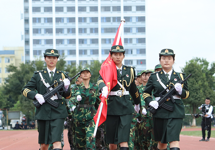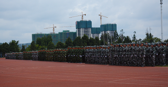 9月30日,永利官网在田径场举行2017级新生军训汇报表演暨总结表彰大会。学校党委书记陈永明,校长黎素梅,党委副书记张祖武,副校长郭华、董建华、马银海、沈凡,副校级领导孙勇,武警边防士官学校副校长李荣、训练部部长任洪川、训练部副部长赵立志、业务系主任高忠良、教育处处长唐业宏和官渡区人民武装部政委周文斌出席大会。 4800余名同学时刻保持着“坚韧不拔、毫不松懈、永不服输”的精神,在14天的军训过程中,不畏烈日当空,不惧风吹雨打,克服小伤小痛,顺利地完成了军训。今天,他们精神饱满,整装待发,时刻准备着接受领导检阅。 汇演进行第一项,奏国歌,迎国旗。庄严的国歌响起,全场肃立,护旗队高举五星红旗,缓缓走过队列。迎国旗完毕,党委书记陈永明检阅军训方队,当陈书记走过方队时,嘹亮的口号带着无限的活力,响彻整个校园,“首长好!”“为昆院争光!”同学们斗志昂扬,意气风发,将14天的军训成果展现得淋漓尽致。在《歌唱祖国》的乐声中,标兵就位,分列式开始。国旗护卫队是汇演方队的排头兵,持枪方队、各营方队、国旗班紧随其后。分列式场面宏大,气势非凡。 分列式完毕,军事训练科目汇报表演开始。第一个表演的是队列操方队,40多位女同学将舞蹈艺术和军事动作融为一体,用杨柳般婀娜的身姿为我们上演了美轮美奂的视觉盛宴。在钢与柔的环境反差下,女子队列方块登场了,她们身着迷彩服,手戴白色手套,随着队形变幻出欢庆党的十九大的图案,整个画面流畅整齐,现场掌声不断。擒敌方队的361名同学汇编成19行19列的方队,寓意喜迎党的十九大的召开。在一声声“杀杀杀”中,女生匕首操表演有序进行,她们用简单而又准确的动作展现出敢于拼搏的精神。 汇演结束后,党委副书记张祖武宣读了《关于表彰yl23411永利集团官网关于2017级学生军训优秀集体,优秀个人的决定》。与会领导们为内务优秀宿舍、军训优秀学员、优秀带队教官代表、优秀辅导员颁奖。外国语学院2017级英语1班的徐满笑同学作为军训优秀学员代表发言。 最后,校长黎素梅作总结讲话,她对同学们提出了三个希望:一是希望同学们能在今后的学习生活中保持、巩固和发扬在军训过程中用辛勤汗水换来的好作风、好品质把军训成果转化为刻苦学习和积极生活的动力。二是希望同学们能发扬脚踏实地、百折不挠的精神。三是希望同学们能继续巩固和发扬集体主义精神。